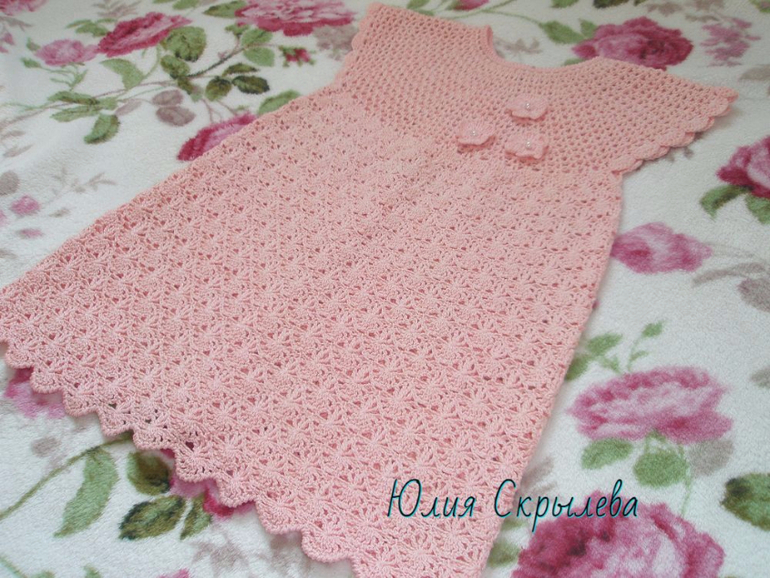 Что-то у меня телефон виснит, не получается загрузить. Наберите в поисковике, платье так и называется "Пушинка". Есть и схема,и описание,но на 3-6 мес