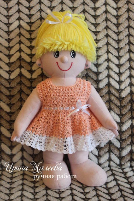 Не знаю, где вязла ее, но кукла, в общем, голая была, без наряда