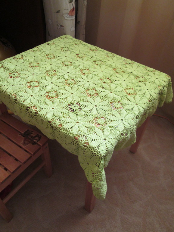 Вязание для домаВообще начинала я ее как скатерть на большой стол. Но когда работа затянулась, а сыну очень она понравилась и он попросил ее себе, я отдала ему, лишь бы поскорее закончить, вот теперь думаю, довязывать или оставить ему на маленький столик)))