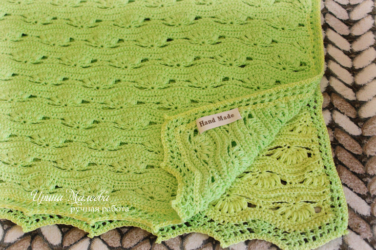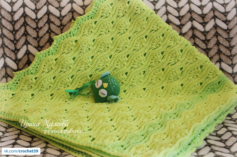 Попробуй образец сначала связать:) ну и про расход пряжи не забывай, тут он достаточно большой получается, и сам плед не легкий. Хотя,вообще, одеяла легкими не должны быть, если по-правильному.
