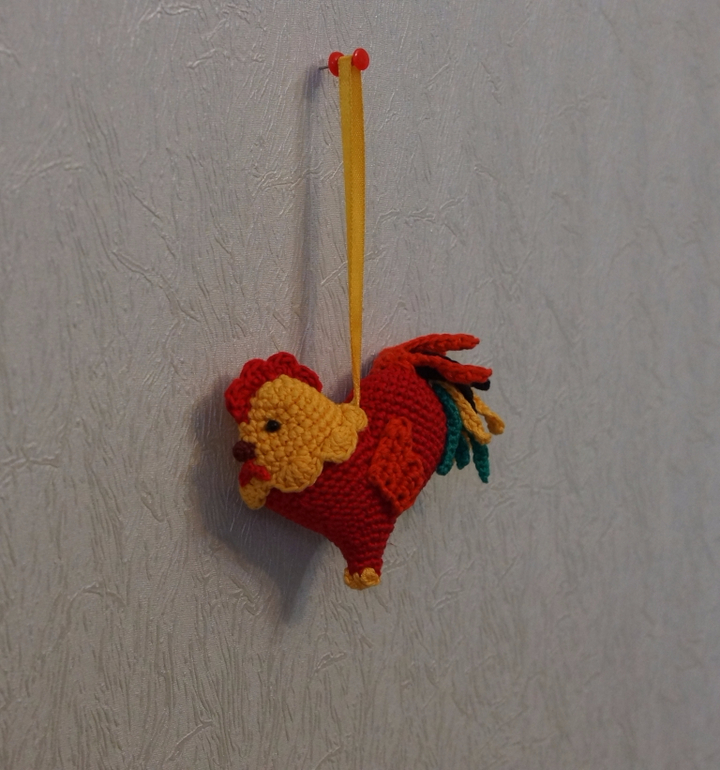 В продолжении предыдущего поста о сувенирах к новому году, появился еще один вариант Петушка к новому году, а именно ёлочная игрушка: