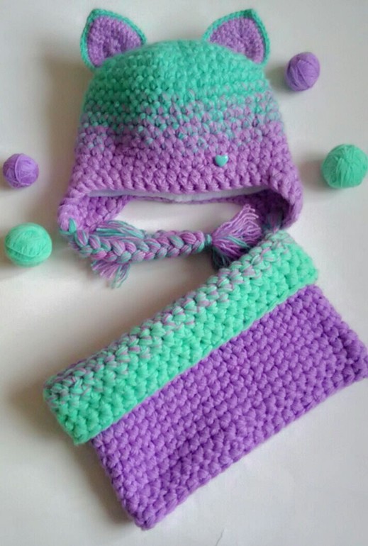 Головные уборыВязка в несколько нитей с переходом в другой цвет.Так же к ним связанны снуды. Пряжа детская серия.