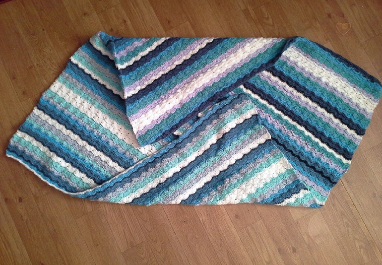 Так как это мой первый опыт вязания пледа и вязания не просто столбиками с накидом, то немного накосячила:под конец плед стал чуть шире, но не критично.
