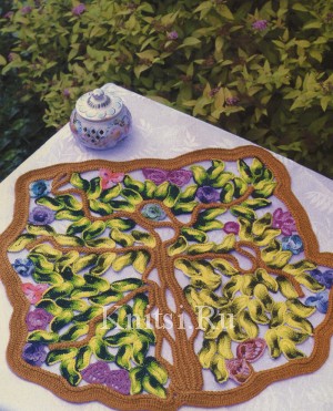 Ирландское кружево. Отдельно вяжутся листочки, цветочки, полосочки крючком. Потом все соединяется.