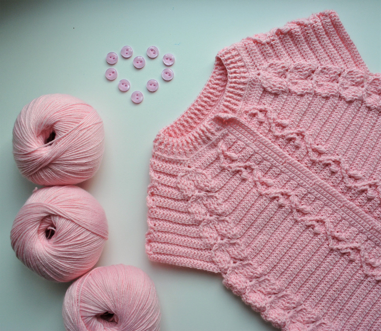 Ушло 6,5 моточков на крупненькую полугодовалую девочку. По стандартным меркам размер на годик)