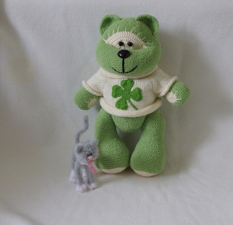 Классный мишутка!! А котик,что тоже вязаный?такой малыш))