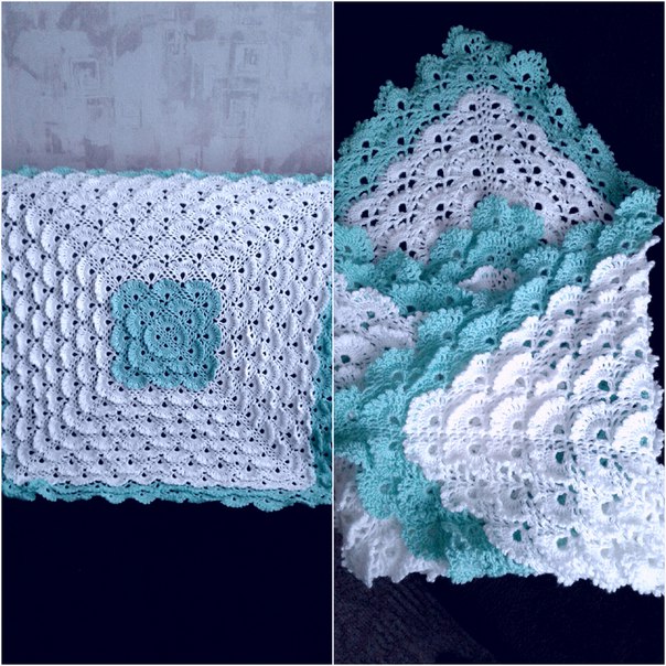 Вязала год назад плед- 75*75 этого хватило.ребенок же 50 см рождается.зачем метровые вязать...выписывались 6 мая.под пледомон был в костюмчике хлопковом,пеленка и плед