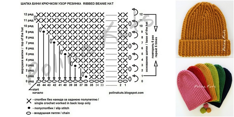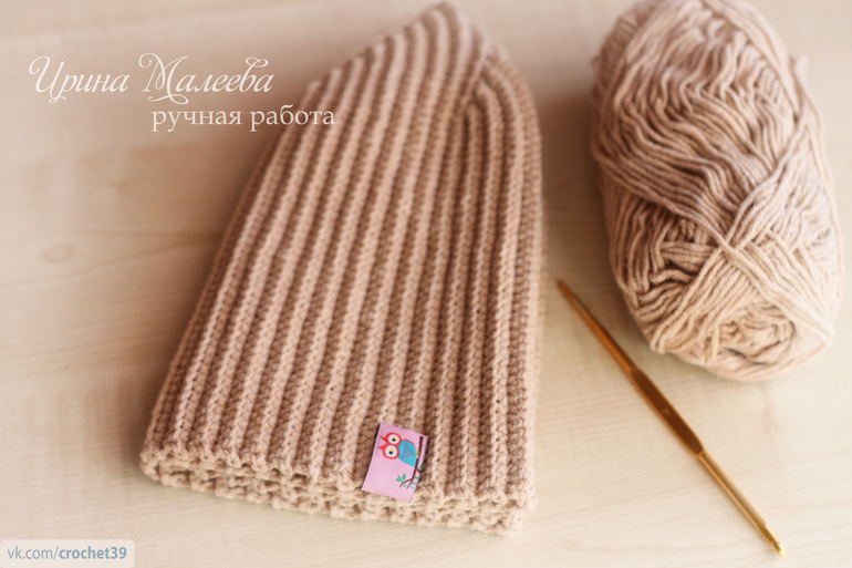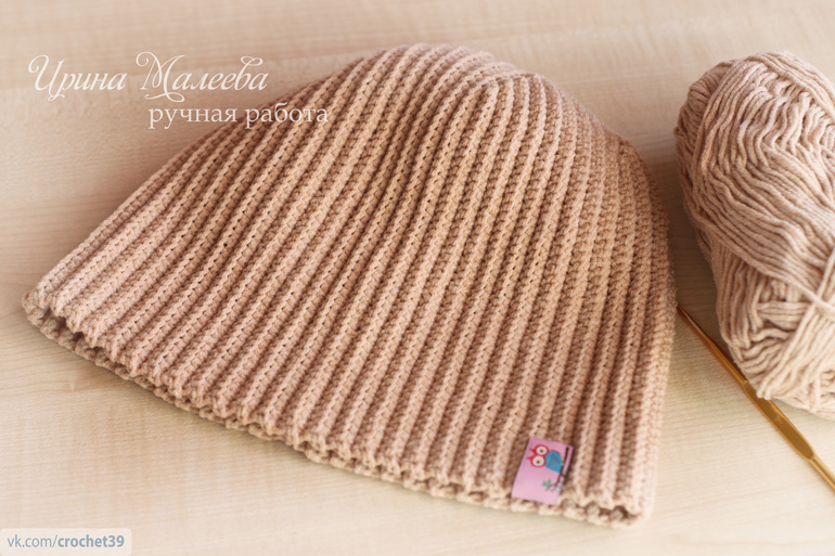 Шапочка бини, не высокая, 26 см. Из пряжи Alize Cotton gold, крючком №3, сбн за заднюю полупетлю поперечным вязанием.