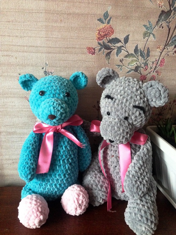НАШИ ХВАСТУШКИДевочки хочу поделиться с Вами моим хобби - вязание крючком. Хочу сказать, что вдохновение ко мне пришло после выхода из декрета. Многие интересуются , откуда беру время? Сама незнаю...но могу сказать одно, что меня это расслабляет, успокаивает... я полностью погружена в то что я вяжу , будь то подушка, корзинка или игрушка - я всегда смотрю как будет лучше или что добавить или убрать, могу просидеть пол ночи собирая все детали игрушки, и как не смешно со стороны, но даже разговаривая с игрушкой, как будет лучше, куда пришить ушки, ножки и т.д... Муж на меня ругается, что все в моем вязании, поэтому решила попробовать вязать на продажу... Мишка в бирюзовом цвете , в наличии - 500р, могу повторить в другом цвете тоже 500р, серый цвет -700р. Вяжу из детской пряжи, наполнитель - синтепух, трикотажная пряжа - 100% хлопок. люблю экспериментировать и вязать что то новое. Если у вас есть какае-то задумка можно ее воплотить, например сделать на животике - МЕТРИКУ . это будет замечательный подарок , самое главное , что они мягкие и приятные на ощупь.