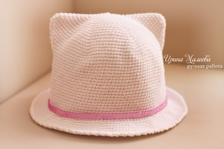 И своей Маргарите шляпку с ушками вязала, из Джинса молочного цвета. Отпарила - поля перестали закручиваться... Дочка не горит желанием носить, да и Бог с ней, поди разбери этих трёхлеток:))))