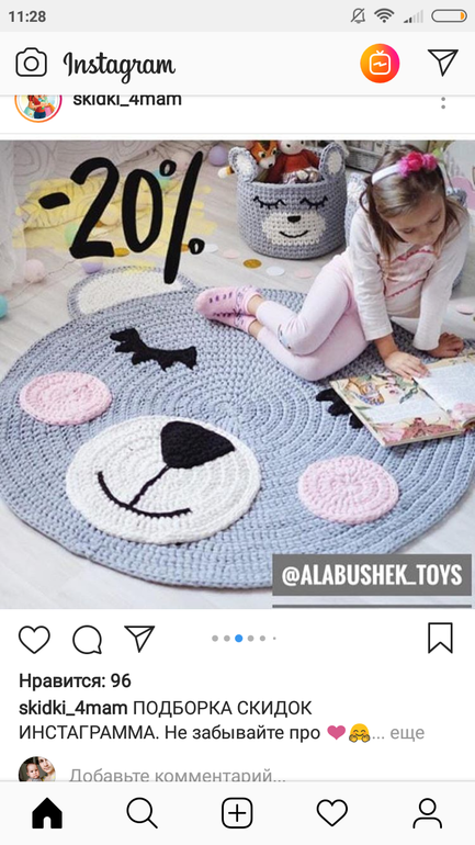 Вязание для домаДевушки, подскажите, для такого коврика какой толщины брать крючок и какую пряжу, чтоб ребенку было тепло и мягко на нем сидеть. Умею вязать крючком с детства, но не практикую). Спасибо!