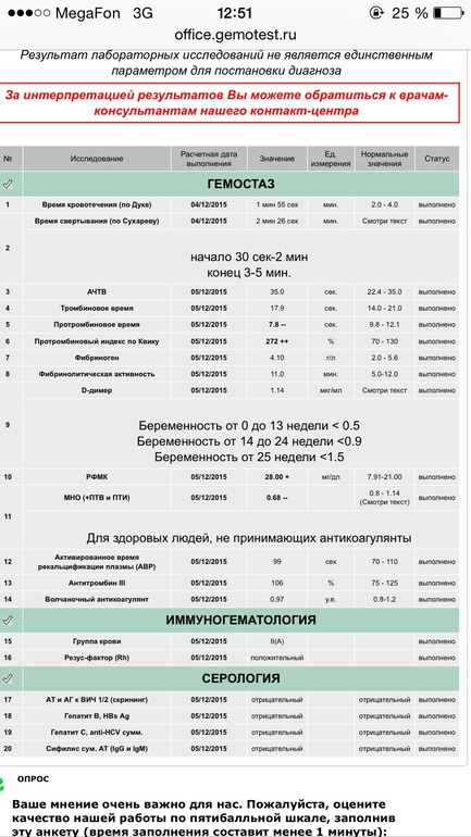 сдала анализы, для поступления в роддом.. по требованию врача..