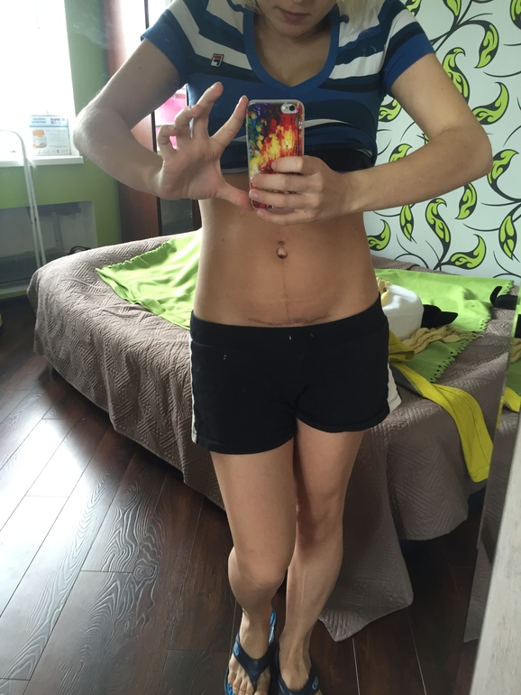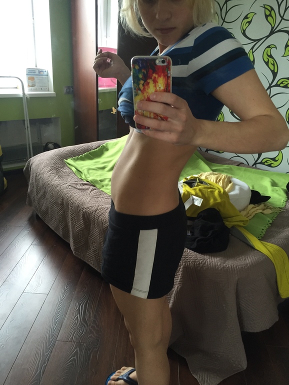 Сам уходил, ни чего не делаю. Когда вспоминаю в планку встаю. Ну раньше я спортом занималась 15 лет. МСМК по легкой атлетике я. Ну и вес у меня сейчас 48 кг, при росте 165.