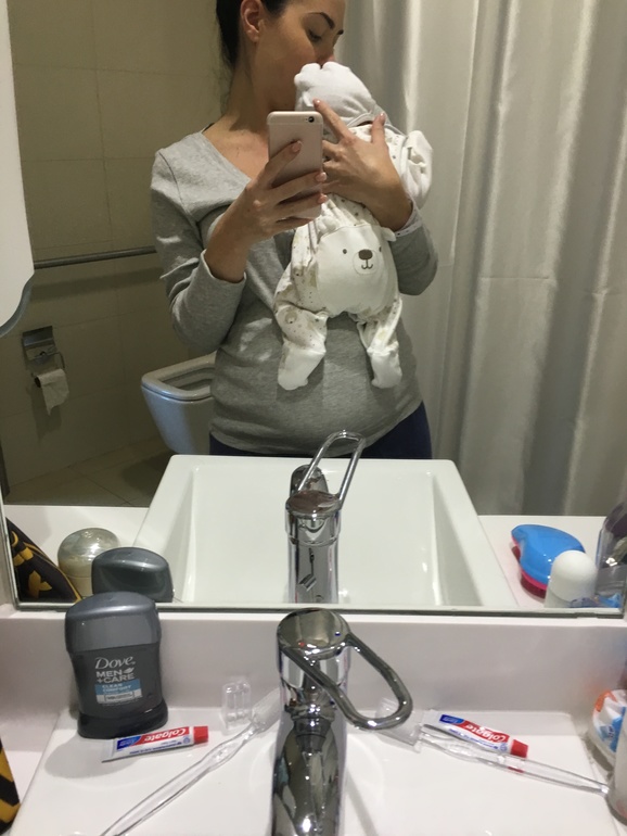 10-го я проснулась в 7 утра, намылась, перепроверила сумки, сходили с мужем в магазин за продуктами, чтобы в роддоме мужу было чем подкрепиться... Думала застелить кроватку для малыша, но так забегались, что не успели 🙈