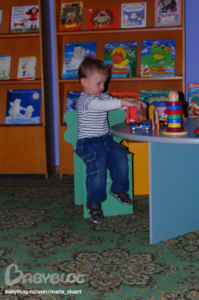 Скажу сразу,что мне все очень понравилось! и читальный зал,где ребята играли,читали различные книги, собирал пирамидки и матрешки. Катенька ползала и рассматривали все на равне с 2-3 летками))))))