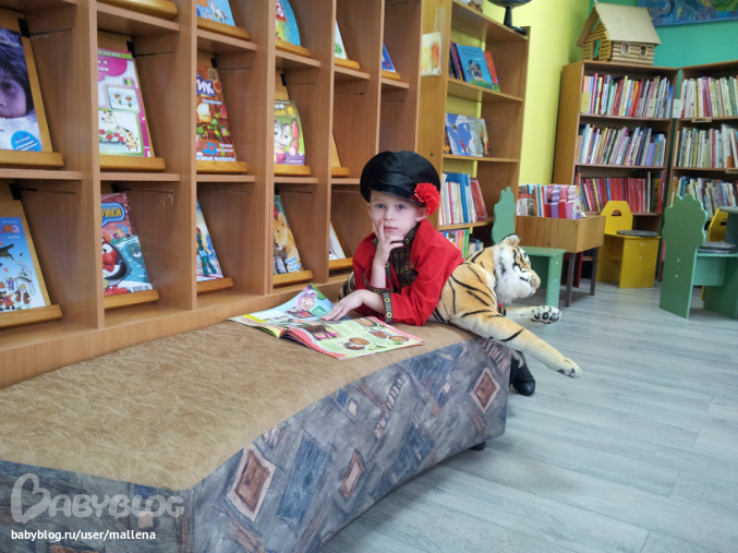 Но Ваня с удовольствием познакомился с библиотекой.. Сам выбрал книги и журналы, которые взяли на абонемент.. И в читальном зале его привлекли больше всего журналы и... тигр :)