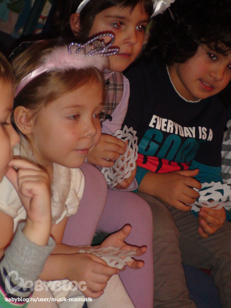 и вот двери распахнулись, заиграла музыка, закружились снежинки. завьюжила метель. сказка о мишке объевшегося снежинок всех здорово повеселила.