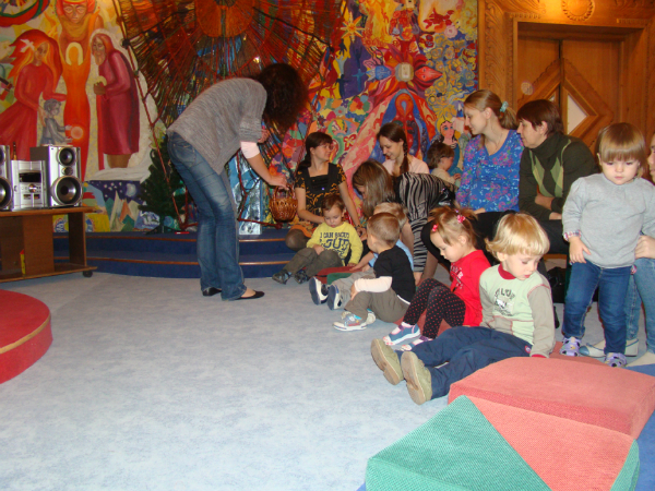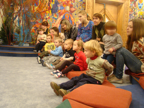 а здесь даже встал))) Вообще видно, что детки слушают - им интеренсо)