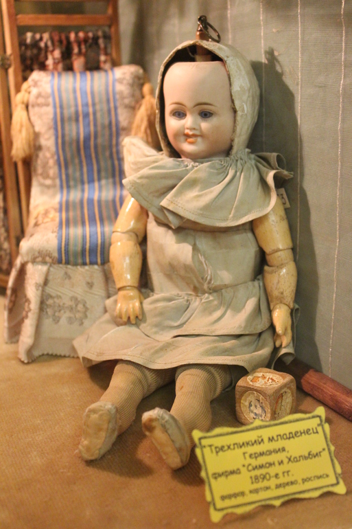 Этой куколке около 100 лет, во время эвакуации хозяева забрали ее из дома вместе с деньгами и другими драгоценностями, таким образом сохранили ей жизнь.