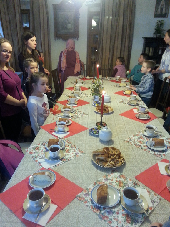 Поиграв занялись творчеством, делали красивые цветочки пасхальные.Ну и конечно традиционно в старинной гостиной отведали душистого чая с пасхальным угощением !