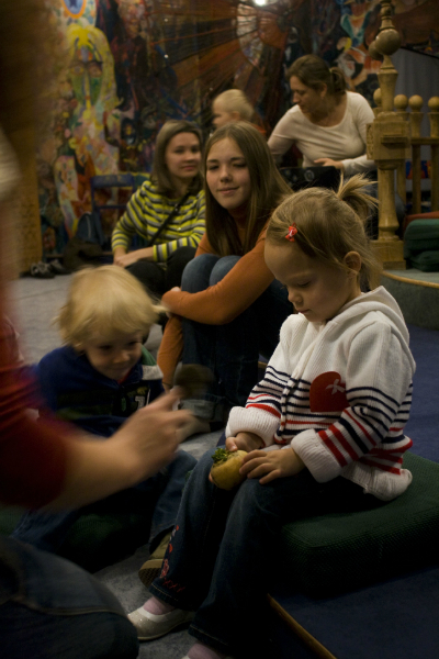 Вы спросите меня, как я могу судить о занятиях, если я на самом занятие ни разу не была. Я отвечу: мой сын рассказывает взахлеб о том, что происходит в библиотеке. И не только рассказывает, но и показывает, то, что не может выразить словами. Причем рассказывают и показывают они наперебой с бабушкой/няней. и я понимаю, что оба остаются в восторге от таких походов. Я рада! здорово, что есть такие занятия!