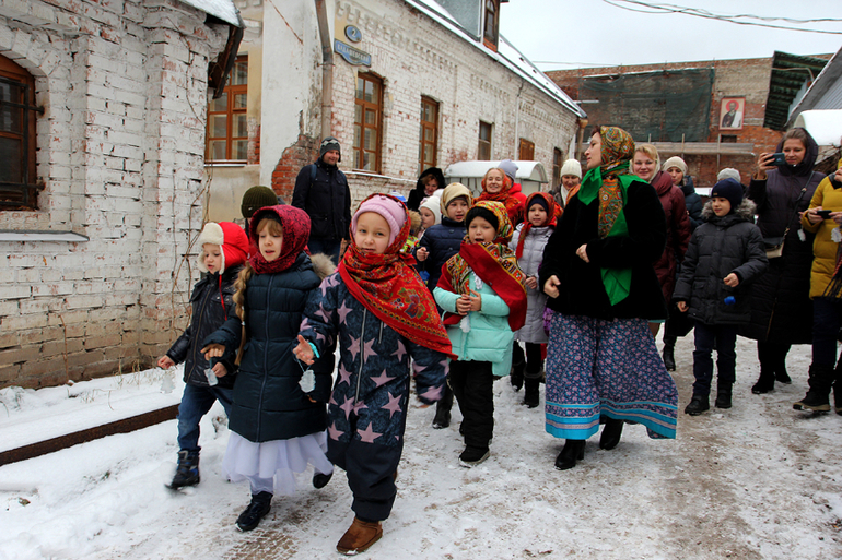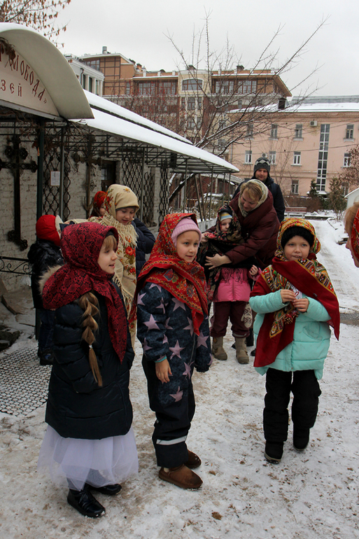 P.S. Игры тоже были (игры в Кадашах всегда интересные, самобытные, для нас новые. Под песни, колядки, частушки). Сегодня настолько между делом и в тему, что дети не успевали засидеться. Действие менялось от рассказа к подвижности часто. Программа плавно перетекала от одного к другому, была логична и понятна.