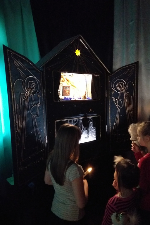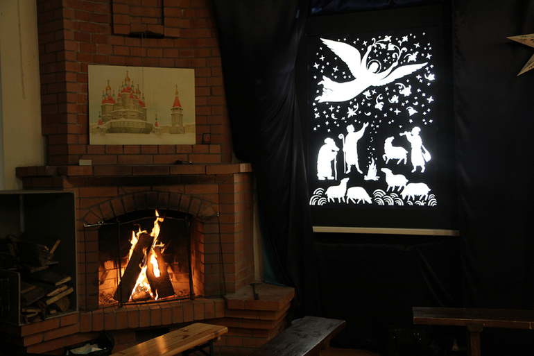 Когда познакомились с названиями и поняли что есть что (что "ясли" это кормушка для скота, а не детская группа в саду), узнали как Богородица оказалась в пещере и что там произошло, перешли к спектаклю.