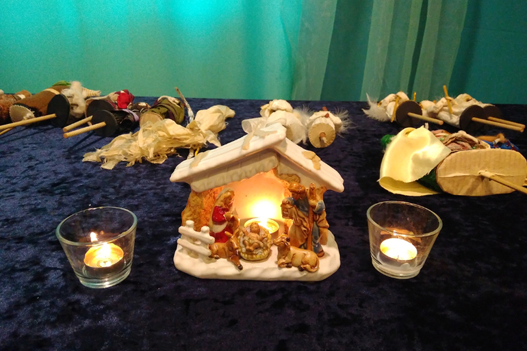 Включили свет, чтобы было хорошо видно мини-сцену и Зинаида Петровна рассказала детям что такое ясли, кто такая Богородица, почему она оказалась в дороге и родила не дома, а не пойми где.