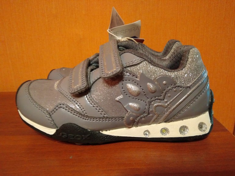 Очень красивые кроссовки Geox для девочки, мигают при ходьбе. Размер 27, но маломерки, стелька до загиба 17,5см. Отдам за 2300 руб.