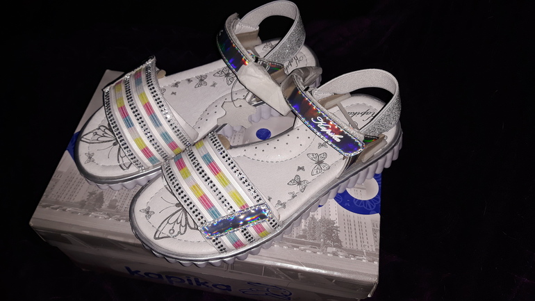 Полностью натуральные регулируются липучками, впереди сверху стразы переливаются.по стельке 20см