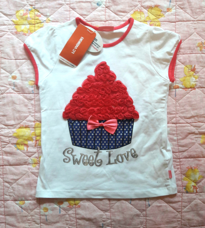 Праздничная футболка LC Waikiki, 6-7 лет, 116-122, плотный качественный трикотаж, украшена аппликацией с бутонами роз, 750 руб
