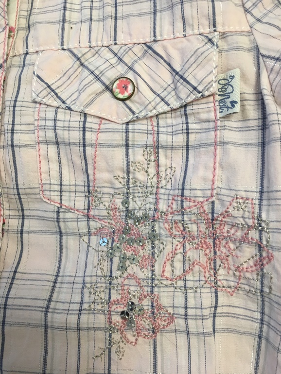 Хлопок. Вдоль проходит люрекс. Вышивка и паетки. На кнопках. Цена 700 руб
