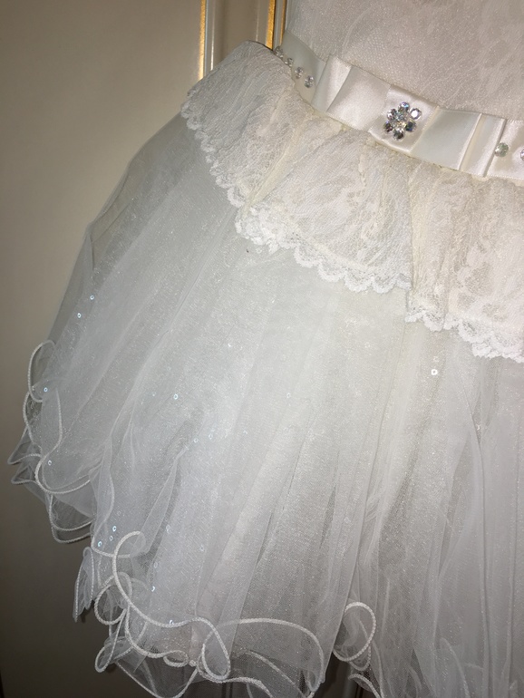 Новое, со всеми бирками. Шикарное, на любое торжество, а на НГ готовая снежинка, заводской Китай, куплено в СЗ за 1700 со скидкой! маркировка размера1, на неполную девочку роста 93 см впритык! Меняюсь на любое равноценное платье или наряд, от 100 см роста!