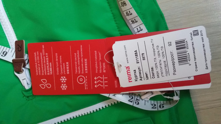 Верхняя одежда мальчики 86-110Куртка Reima 92 (+6) размер. Мембрана 10 000. Утеплитель 160 г. Длина по спинке 45 см, ширина 39 см, длина рукава 42 см. 2400 руб.