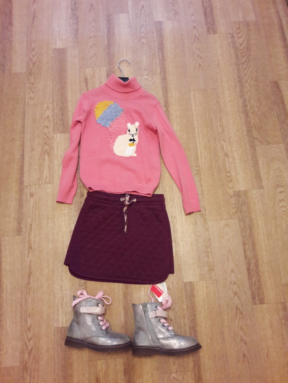 Водолазка хлопок 600 руб.(116размер). Юбка 300 руб.(110размер). Ботинки mothercare 750 руб. (28 р. 18 см)