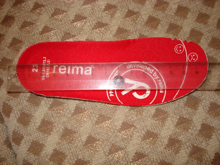 Полная длина 15 см, но из-за загиба стельки сзади - 14,5 см, до смайлика 13 см. Сейчас фото с линейкой пришлю