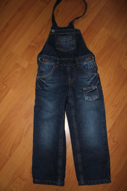 Утепленный джинсовый полукомбинезон, р-р 104