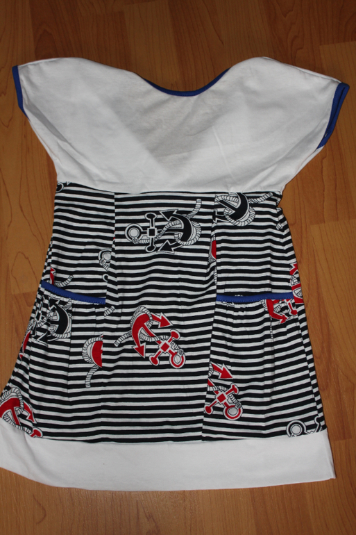 Платье на кокетке с карманами. Сверху на спинке застежка с кнопками.