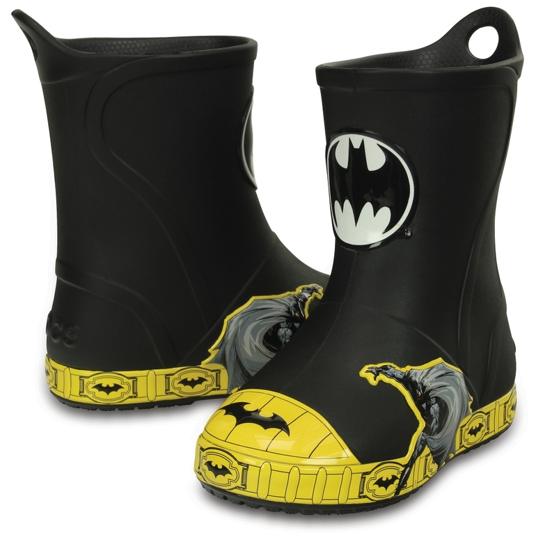 Есть новые шикарные сапоги Crocs с Бэтменом (фото ниже), размер с12. Ребенок перерос, сапоги впритык, но ревет, отдавать не хочет.