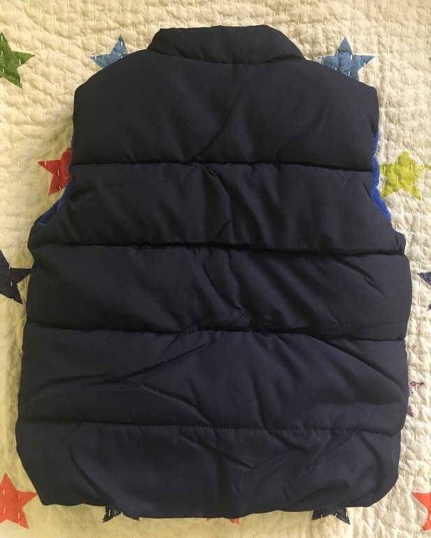 Новый жилет английской фирмы Mothercare, р.6-7 лет, но ОЧЕНЬ сильно маломерит: длина по спинке 44 см. Жилет пухленький, внутри мягкий флис, застёгивается на молнию. Снаружи темно-синий, внутри ярко-синего цвета. Рукава на резиночке, плотно прилегают, исключая поддувание, и в то же время, хорошо тянутся. Спереди имеются 2 кармана на молнии. Высокий воротничок защитник горло в прохладную погоду.