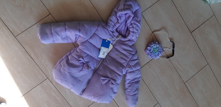 Наш перехапчик. Теплая курточка на флисовой подкладке. Очень нежной расцветки. На рост 92, но маломерит. У дочки 85-86 ей отлично. Территориально Котельники-Чертаново.