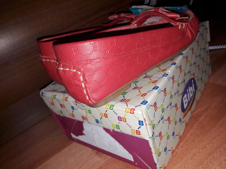 Для девочек 26-33Новые кожаные мокасины, красивого красного цвета. По стельке 18см максимум. Очень легкие. В одном "тапке" поцарапана стелька. Так и купила с браком.Мне это было все равно, процессу ношения не мешает).