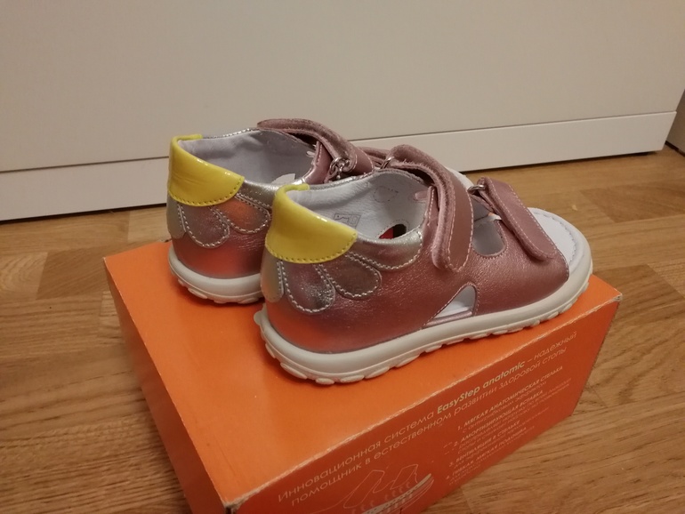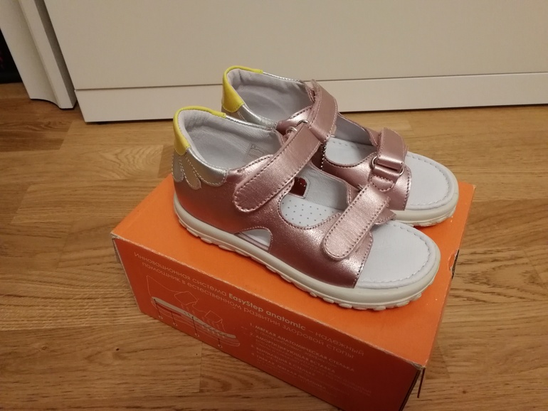 Натуральная кожа. Очень мягкие и легкие, подошва гибкая. Анатомическая стелька с небольшим ступинатором. Покупала в магазине Happy Step.