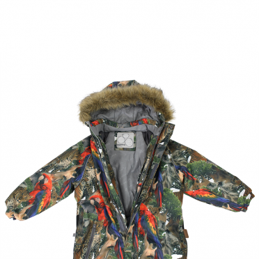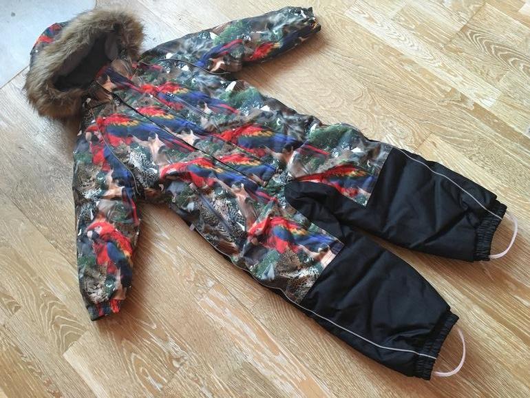 Комбенизон Хуппа 110 из коллекции фешн 110 размера. С этикетками. Очень яркий принт, не хуже Моло. Ткань мембрана 10000, есть утяжка на поясе, мех съемный. Хуппатерм 300 гр. спинка, попа и капюшон микрофлис. Замеры шаг 45 см, рукав от шеи 51,5 см, ширина груди 41 см, длина от шеи по спине всего комбинезона 101 см.