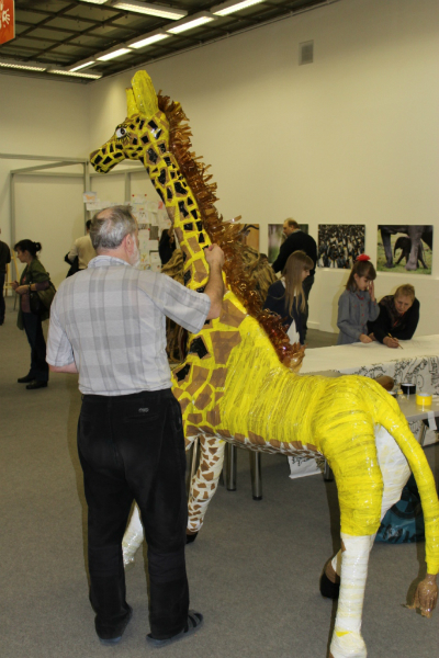 Жираф из бутылок и скотча, создавался на наших глазах