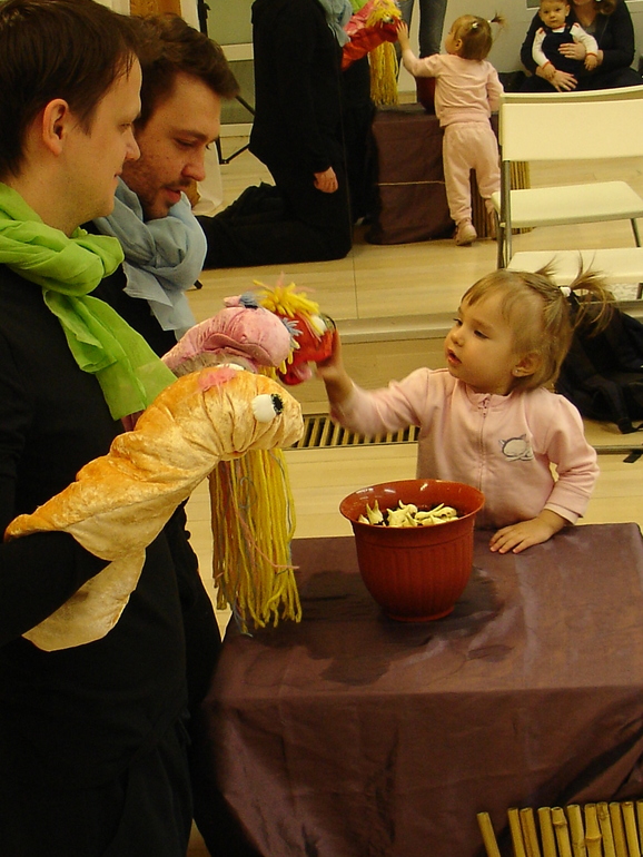 Наш Театр для малышей специально создан для зрителей от 1 года до 4 лет и их родителей. Здесь можно трогать героев и разговаривать с ними, можно сидеть на полу, активно участвовать или тихонечко смотреть. В спектаклях предусмотрены возможности для тактильных впечатлений, например, земля, вода, семена... Создают спектакль профессиональные актёры и музыканты. Живая музыка помогает детям и родителям погрузиться в сказку...Сюжеты спектаклей добрые, близкие малышам и немножко поучительные, ведь театр - это не только развлечение но и труд для души:)