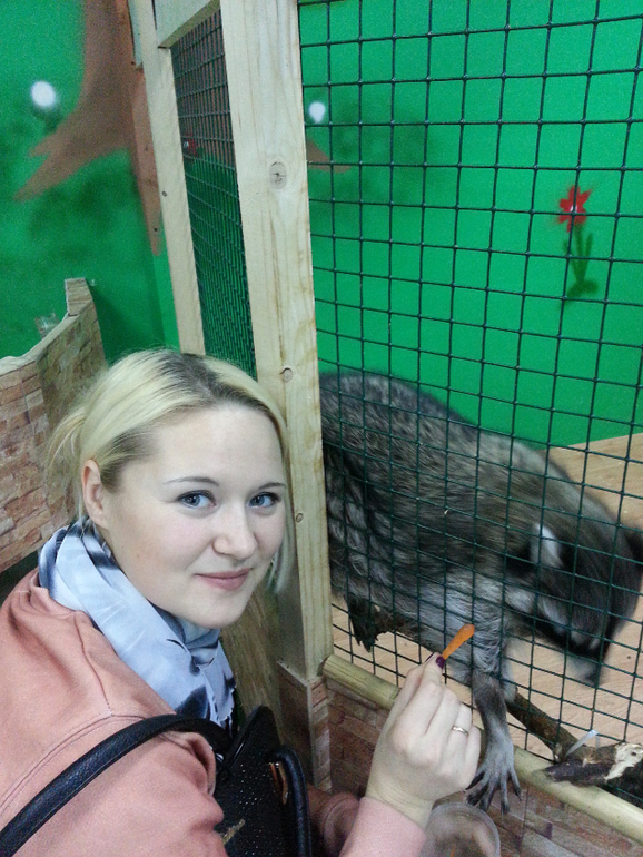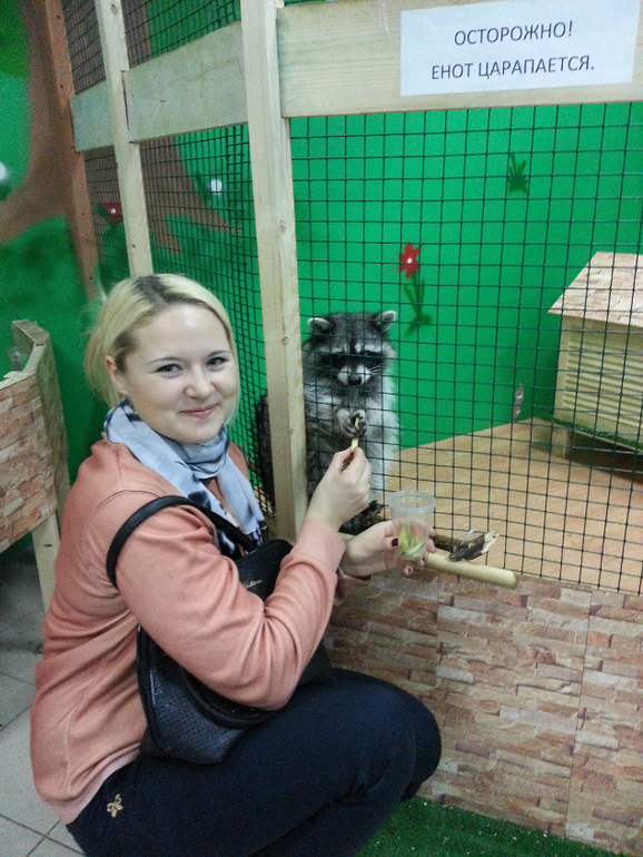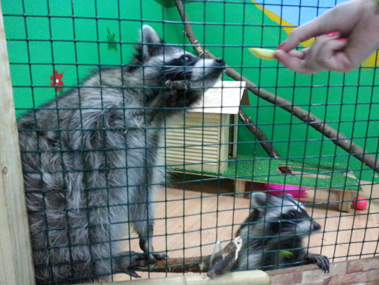 Баран меня цапнул за палец, когда я его кормила и глаза у него страшные очень! Енот царапается и схватил мою сумку и за кофту потянул) Думала там и останусь. Ежик-альбинос (не колючий и белый) тоже заинтересовался сумкой, подбегал к ней и нюхал.
