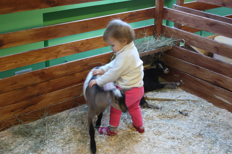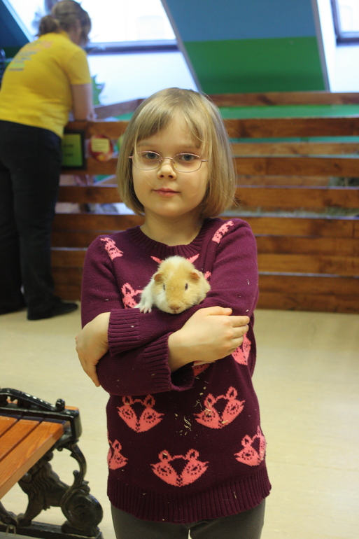 Найти это место легко и мимо пройти сложно. Зазывают всячески и издалека. Шли от метро Арбатская минут 10, может чуть больше. Домик такой вполне сказочный, яркий - дети обалдели сразу.Такого безусловного восторга как у детей, у меня конечно же нет.))) В целом не плохо. Чисто, светло, почти не пахнет, есть туалет и рукомойнички. Зверей мало. Перед посещением я смотрела отзыв на "Отзовике" и шли мы туда с желанием смотреть обезьян, куриц, арр, черепах и лемуров. Так вот, этих животных там нет. На данный момент в заключении в экспозиции у них находятся: кенгуру (1 шт), волнистые попугайчики (много), цыплята (много), пони (1 шт, кусается!), козлята (2 шт), кролики (несколько), морские свинки (несколько), ёжики (3 шт), еноты (2 шт), носухи (несколько), мини-пиги (3 шт), змеи мелкие и скучные (2 шт), шиншиллы (2 шт), белки (под вопросом, не видели их), фазаны (2 шт) и индюк. Всё. Звери не больные, с хвостами и конечностями. Но очень грустные. И очень-очень голодные. Кролики постоянно пытались сжевать дочкину туфлю, пони кусался (явно не от злости, а с голодухи), свиньи орали и прыгали за пластиковой тарелкой с "угощением"... Кстати, "угощение" за 50 рэ - это около 30 грамм вялых фруктов, нарезанных полупрозрачными ломтиками. Дать это животному без риска потерять палец - невозможно. Короче нам с мужем, взрослым занудам, зверей было очень жалко. А дети повеселились.