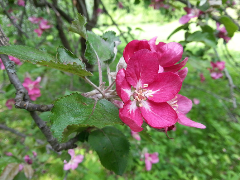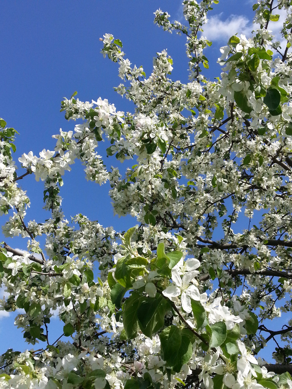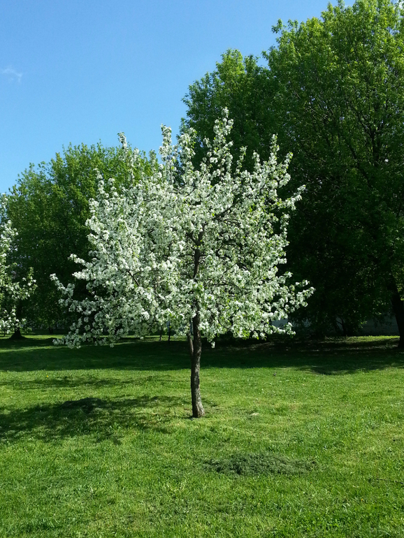 А так цветут яблони в Измайловском лесопарке. В этом году всё вместе - и цветение яблонь и тополиный пух!