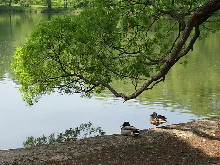 Я нещадно засыпаю фотографиями с прогулок всех своих друзей, сидящих в это время офисе. И кто-то из них доберется-таки на выходных в эти места и погуляет в толпе. А мы гуляем в тишине. Обожаю тишину...одиночество...возможность послушать птиц...наблюдать за общением других людей...смотреть на водную гладь...и всё это в тишине!